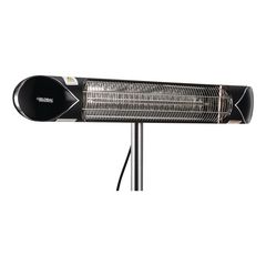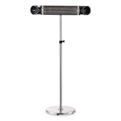 Keep your patrons comfortable well into the cooler months with this patio heater. The perfect complement to decks, patios, and other outdoor locations, this water-resistant heater offers the latest in infrared medium wave technology, enabling instant heating in as little as three seconds. Powered by a remote control, with four settings for customization, your guests will enjoy reliable comfort and warmth. Providing up to 250 sq ft in coverage, this energy-efficient heater features a carbon fiber lamp that emits soft, warm light, making the unit unobtrusive in a range of outdoor settings. The heater offers up to 90% heat efficiency for overall cost savings. IP55-rated to withstand dust and low-pressure water spray. Comes with a built-in safety device that protects the unit from overheating. Can be mounted to the wall or ceiling, or can be moved as needed with the included stand. Installation must be completed by a qualified technician.
